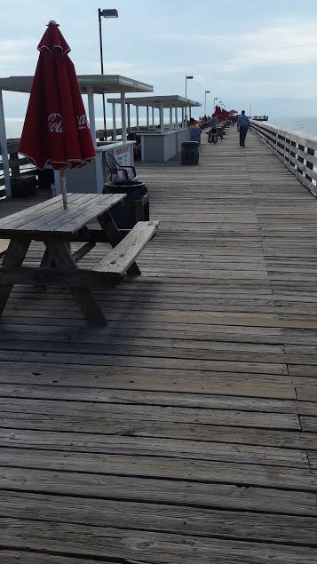 After church we went back downtown, but this time to one of the ocean piers so Mikey could try fishing THERE.